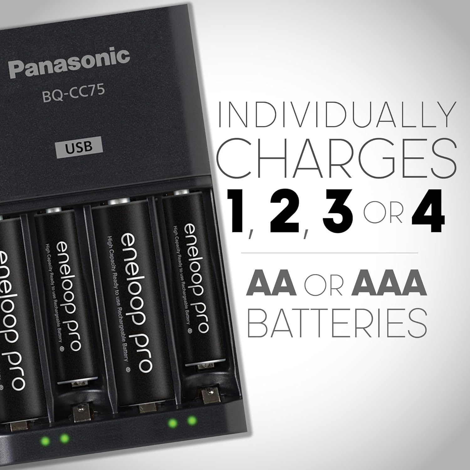 eneloop K-KJ75KHC4BA Advanced Battery Charger with USB Charging Port and 4AA Eneloop Pro High Capacity Rechargeable Batteries,Black