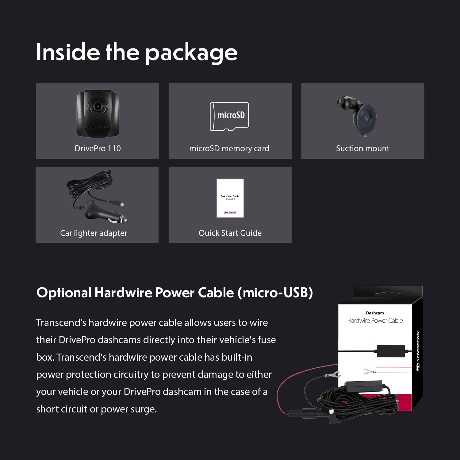 Transcend DrivePro 110 Car Video Recorder Dash Cam Full HD 1080p/30FPS 64GB Micro SD Card Included
